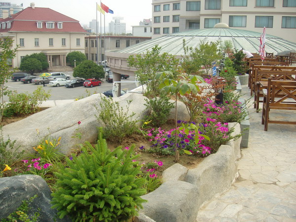 山东烟台金海弯国际大酒店楼顶花园假山工程