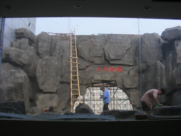 南京山翻大酒店楼顶花园制作假山工程