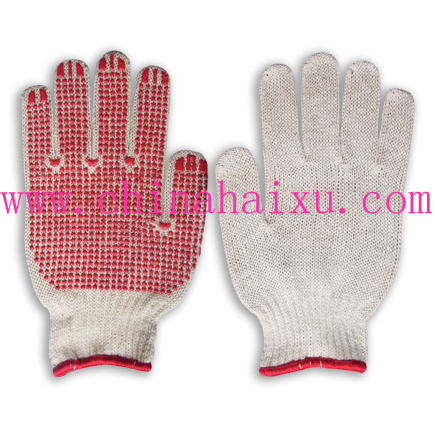 DESCRIPTION: 10-gauge White cotton/polyester yarn shell, red PVC plastic dotted palm