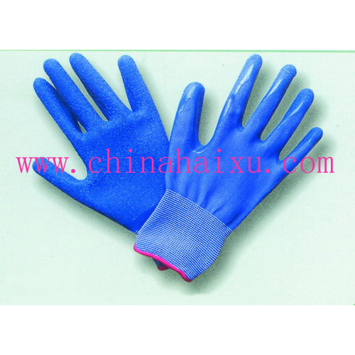DESCRIPTION: 13-gauge blue Nylon knit shell, Blue natural latex palm and fingertip coated, crinkle finish