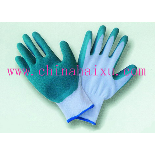DESCRIPTION: 13-gauge white Nylon knit shell, Green natural latex palm and fingertip coated, crinkle finish