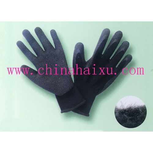 DESCRIPTION: 10-gauge black brushed acrylic knit shell, Black natural latex palm and fingertip coated, crinkle finish