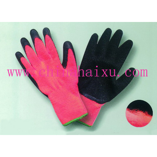 DESCRIPTION: 10-gauge Hi-Viz orange brushed acrylic knit shell, Black natural latex palm and fingertip coated, crinkle finish