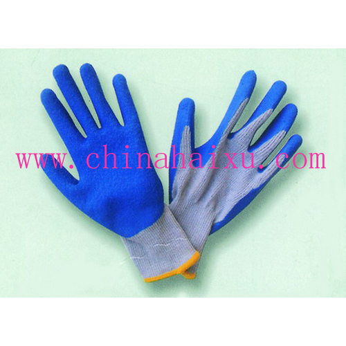 DESCRIPTION: 10-gauge fine gray yarn shell, Blue natural latex palm and fingertip coated, crinkle finish