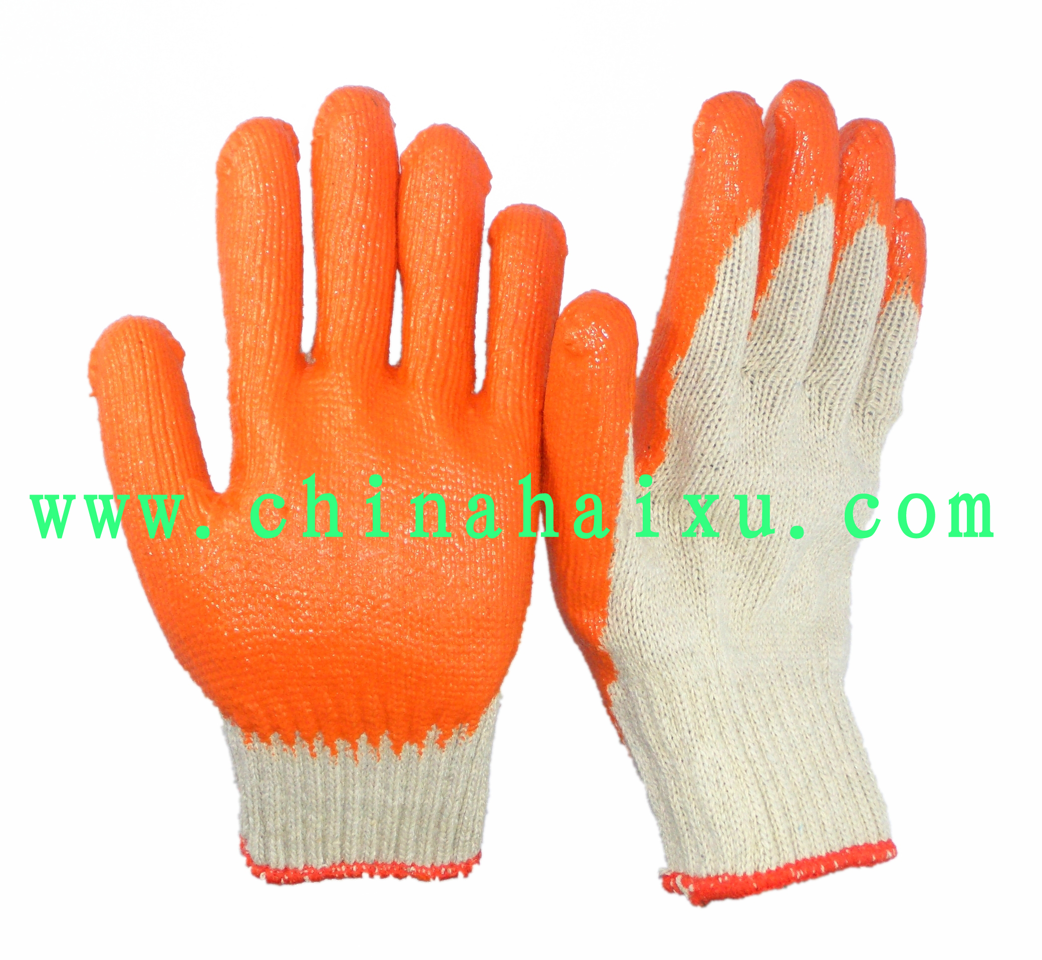 1. The glove lining was made by 10-gauge cotton knitted ,Orange natural latex palm and fingertip coated, smooth finish.